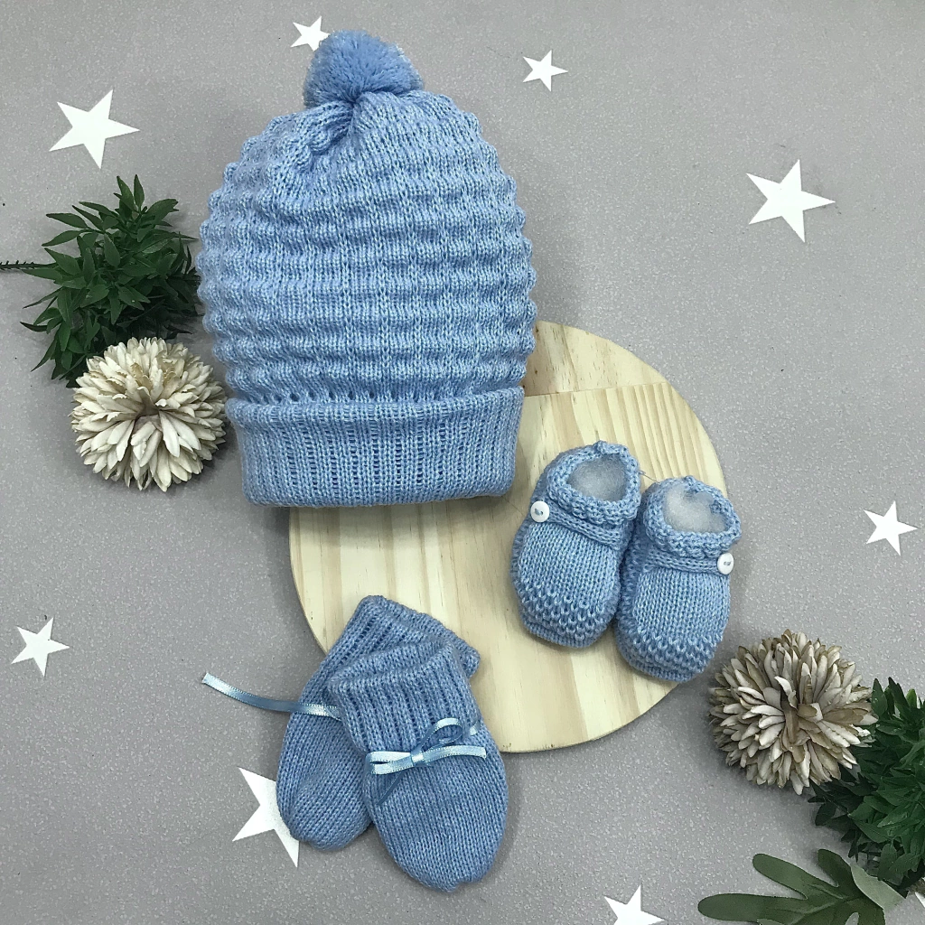 Kit Luva, Touca e Sapatinho Tricô Bubble